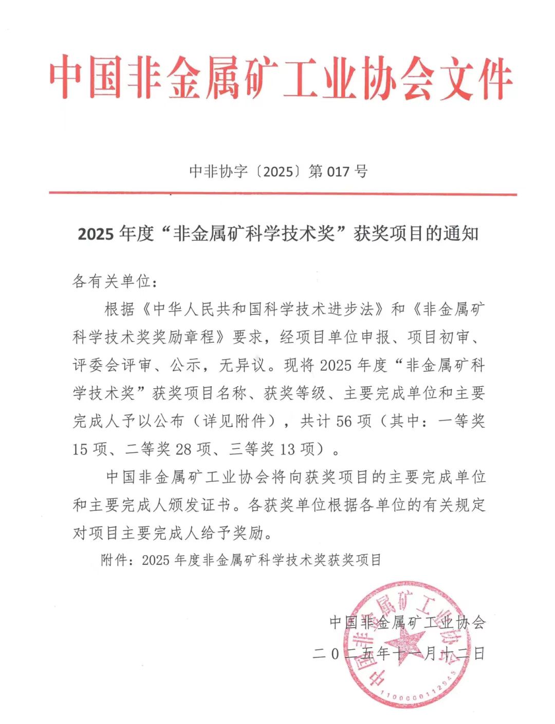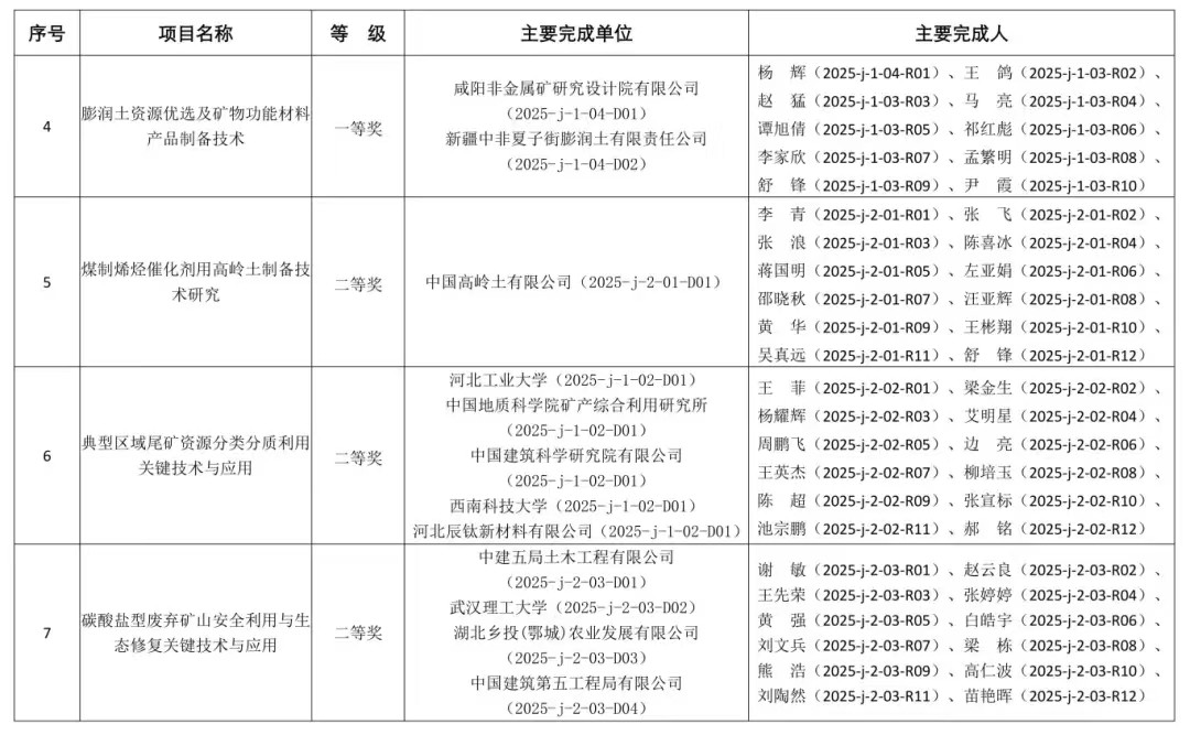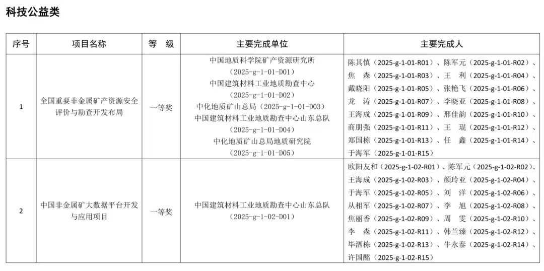 2025年度“非金属矿科学技术奖”获奖项目的通知