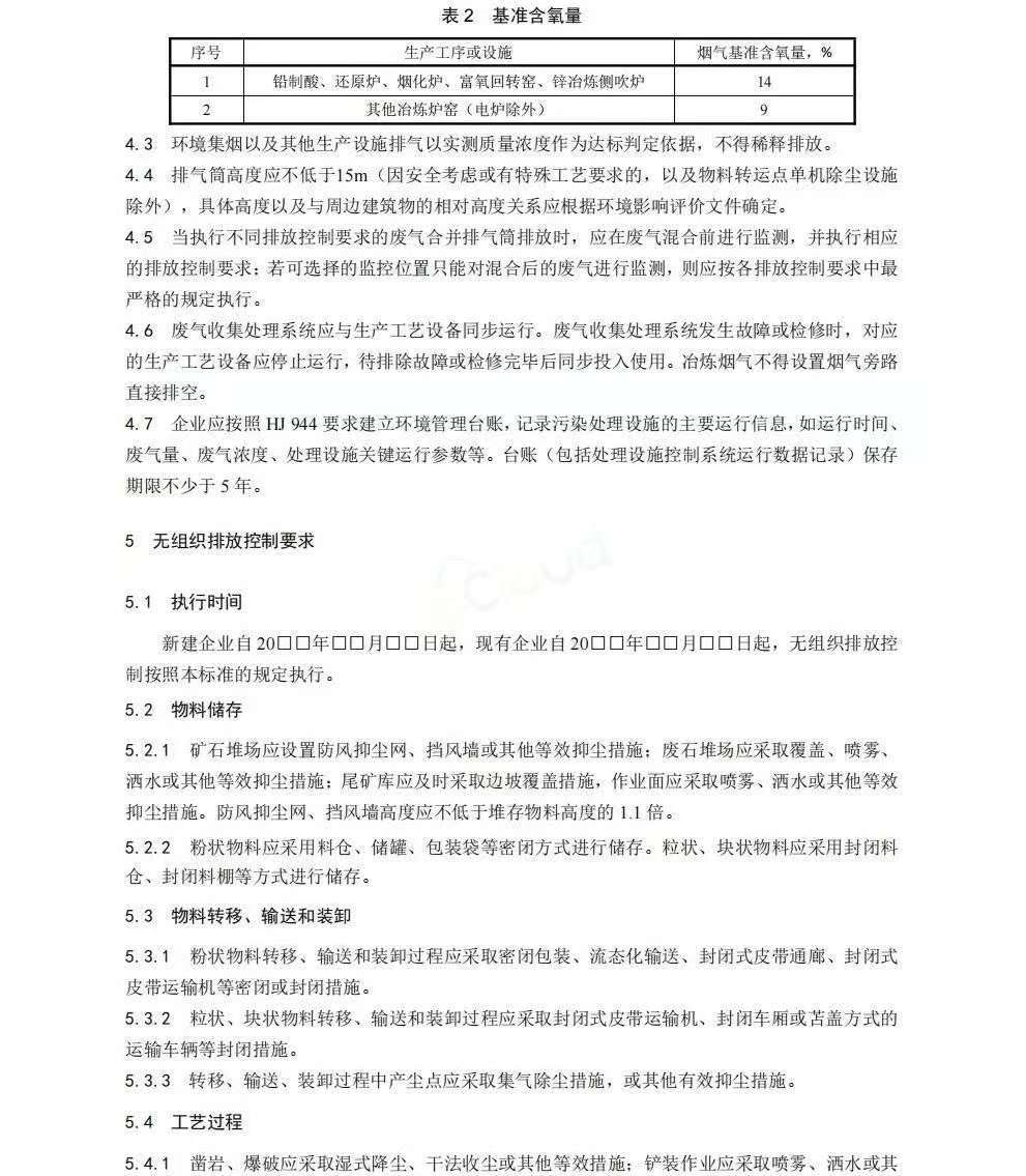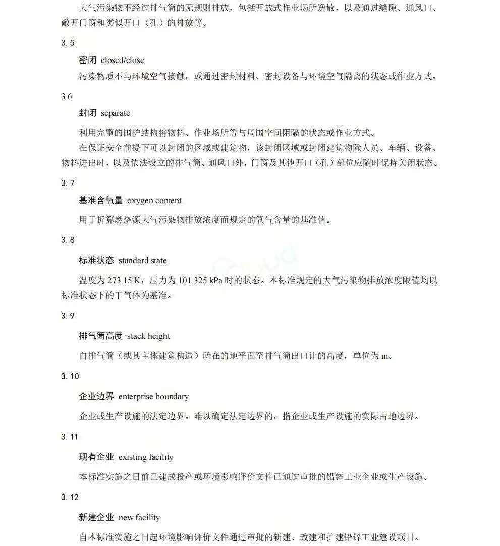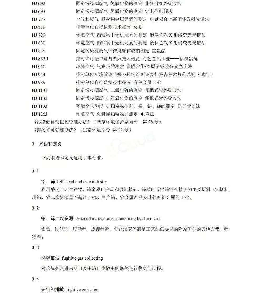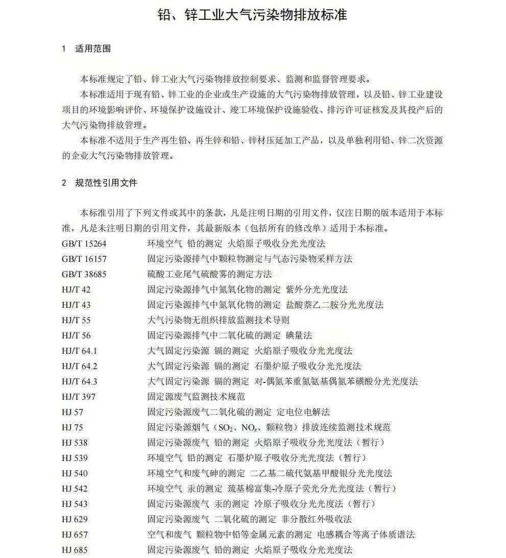 《铅、锌工业大气污染物排放标准》(GB25466.1-2025)规定了铅、锌工业大气污染物排放控制要求、监测和监督管理要求。