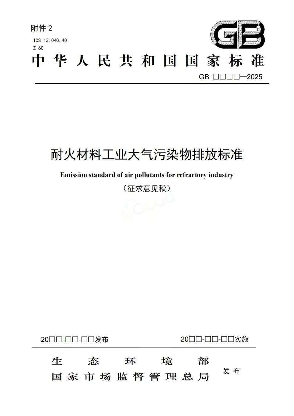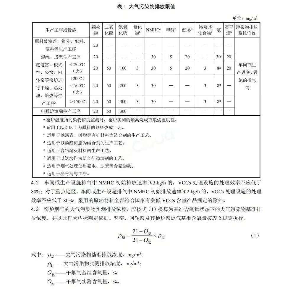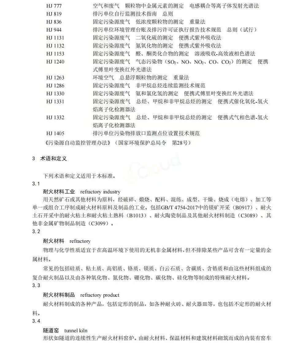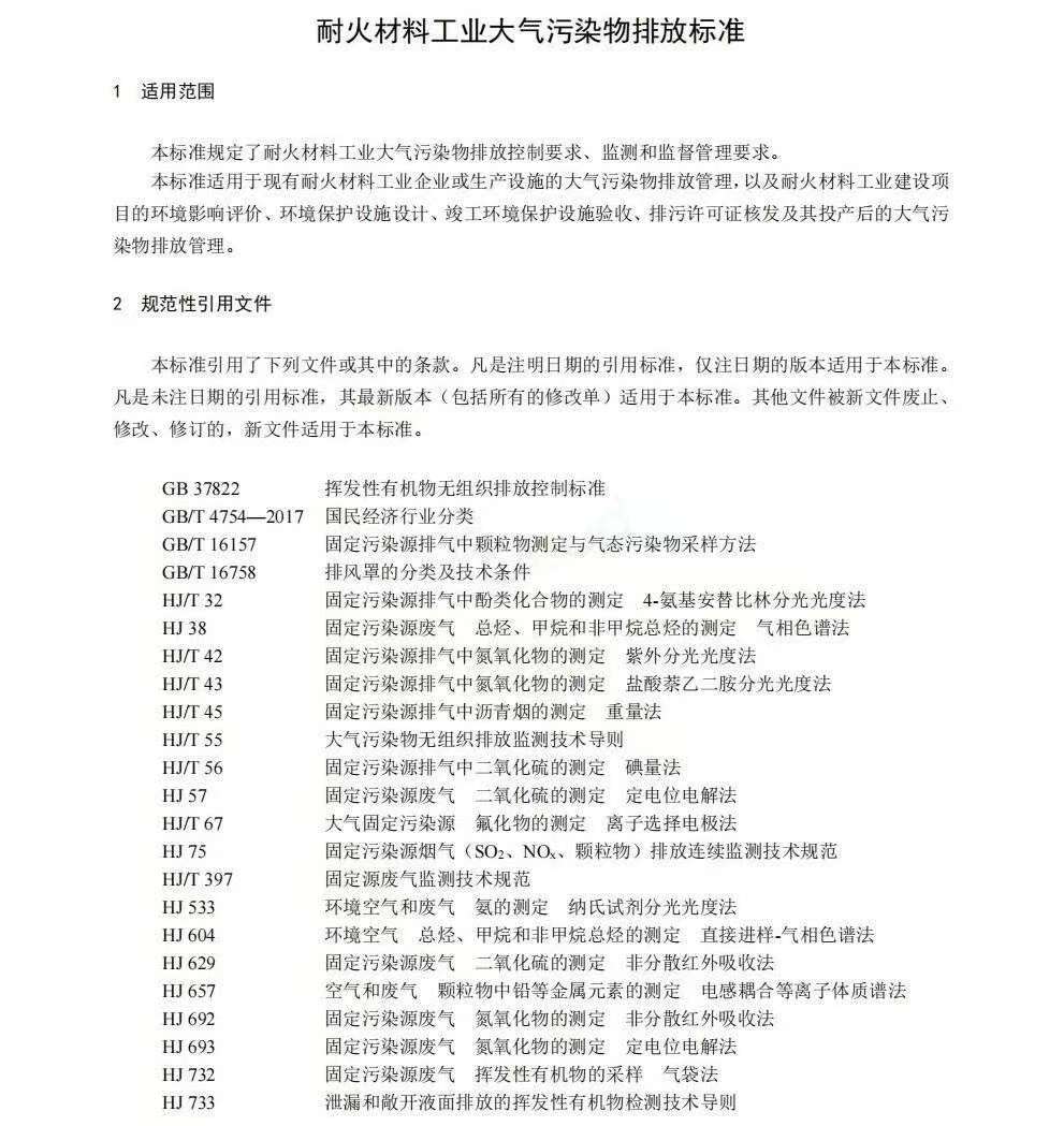 二、《耐火材料工业大气污染物排放标准》(GB46790-2025)。