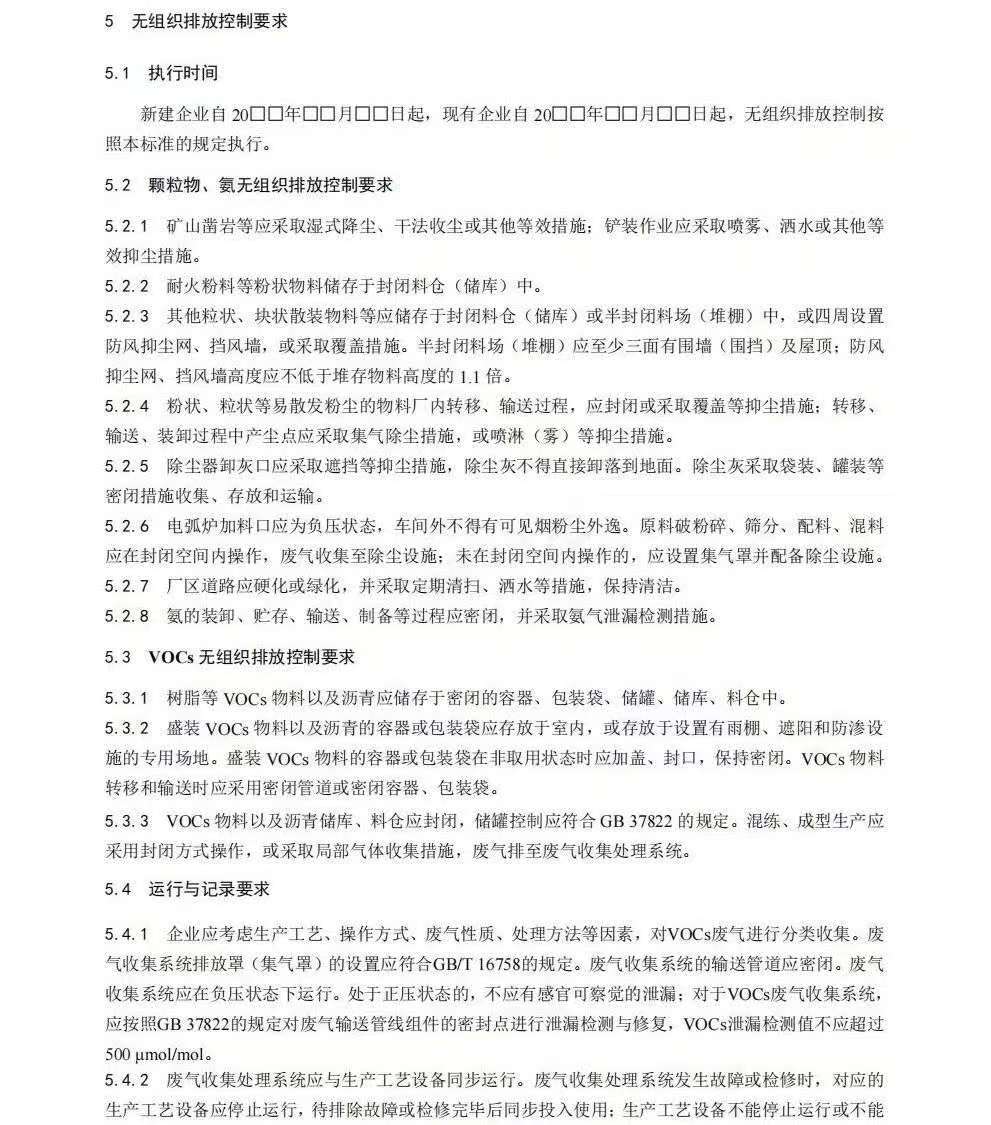 ——收严了大气污染物有组织排放控制要求;