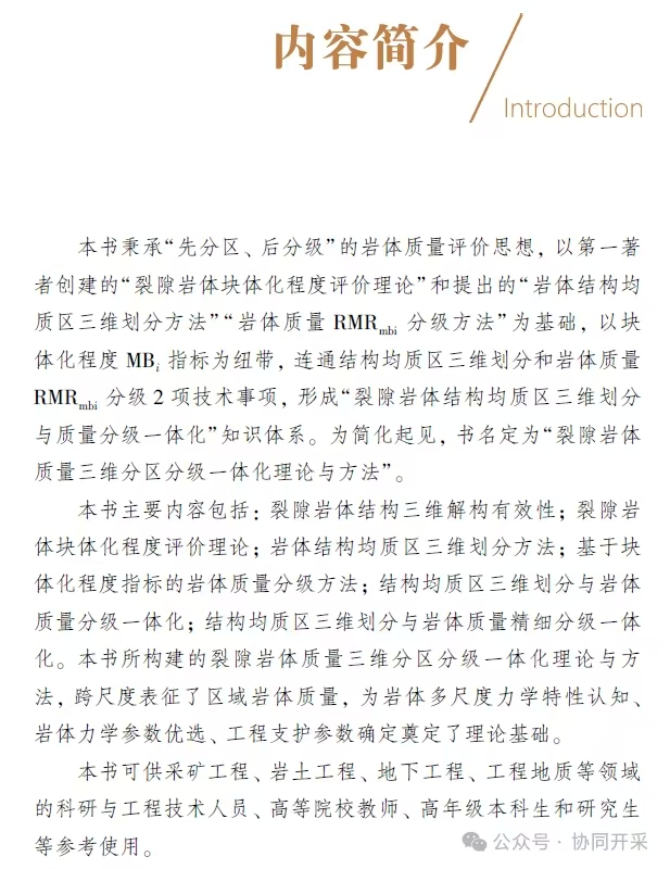 为简化起见,书名定为“裂隙岩体质量三维分区分级一体化理论与方法”。
