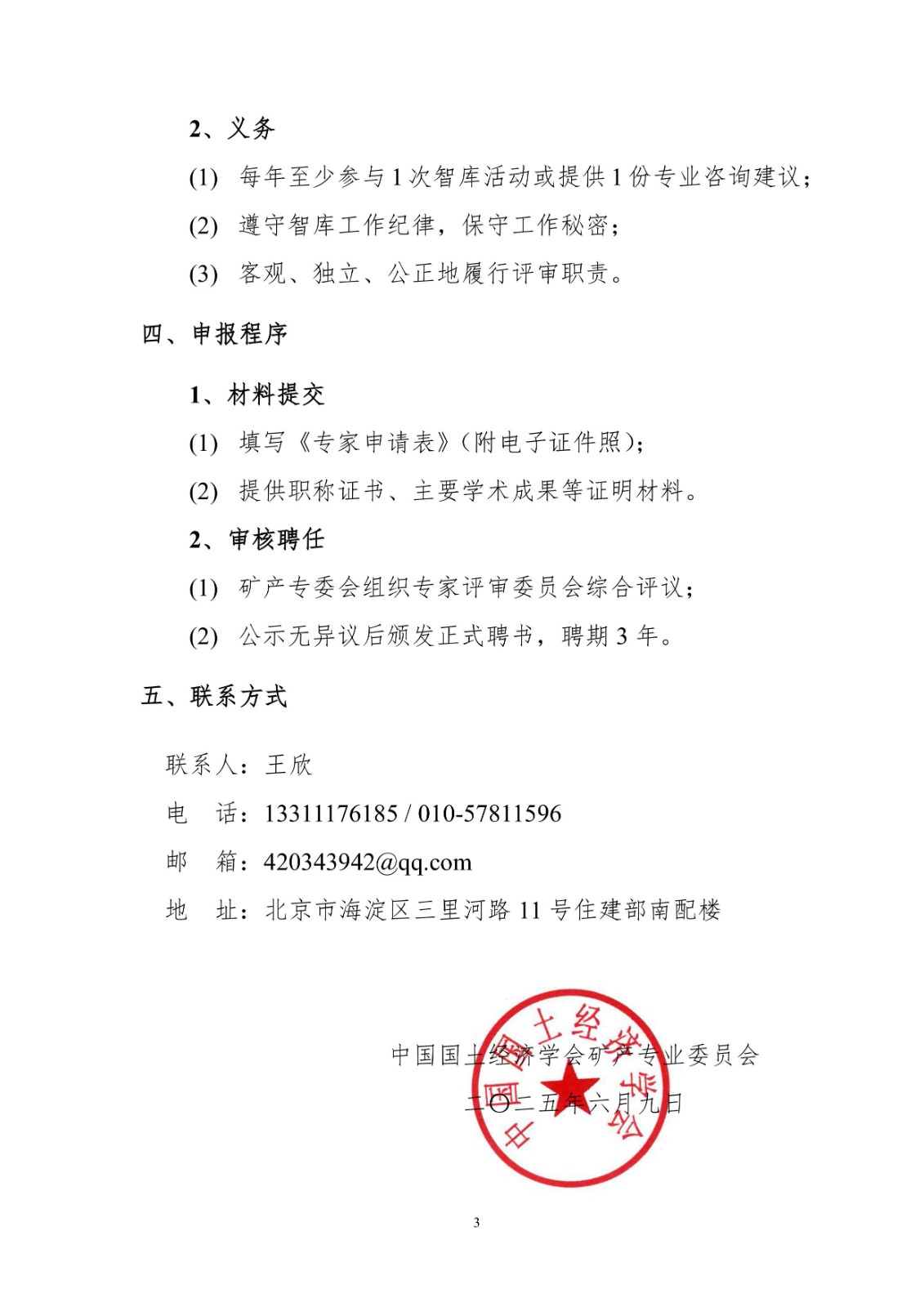 关于中国国土经济学会矿产专业委员会成立专家智库的通知