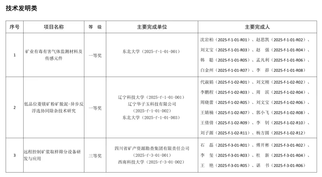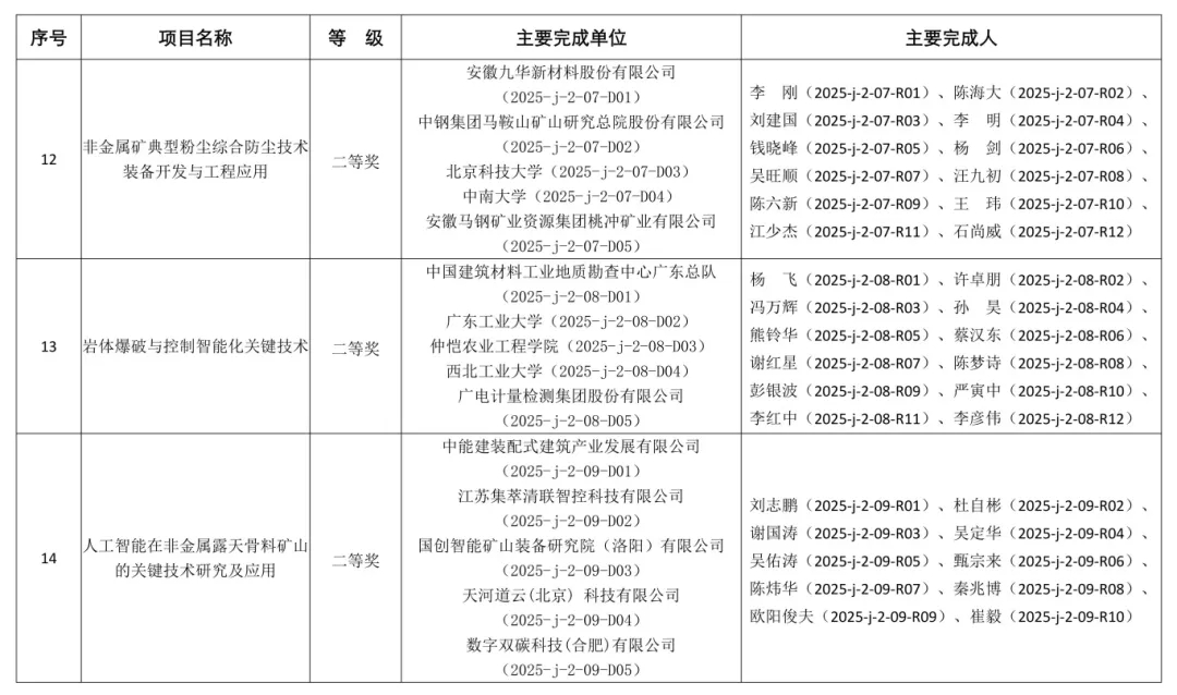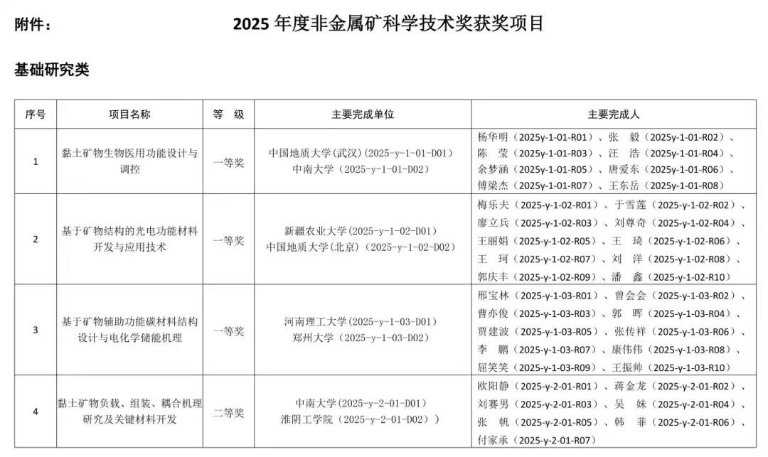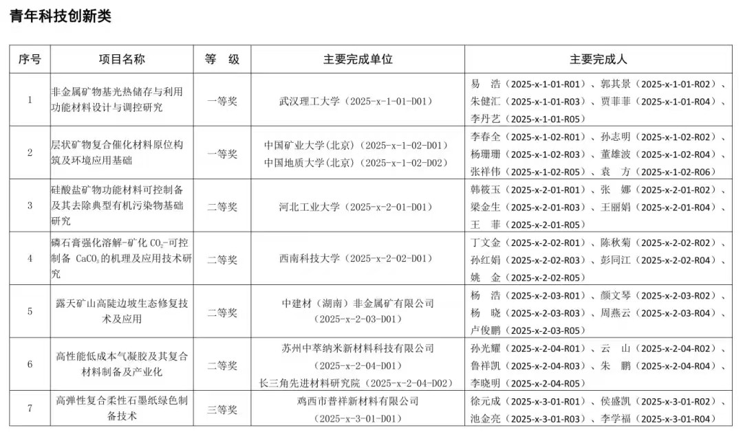 2025年度“非金属矿科学技术奖”获奖项目的通知