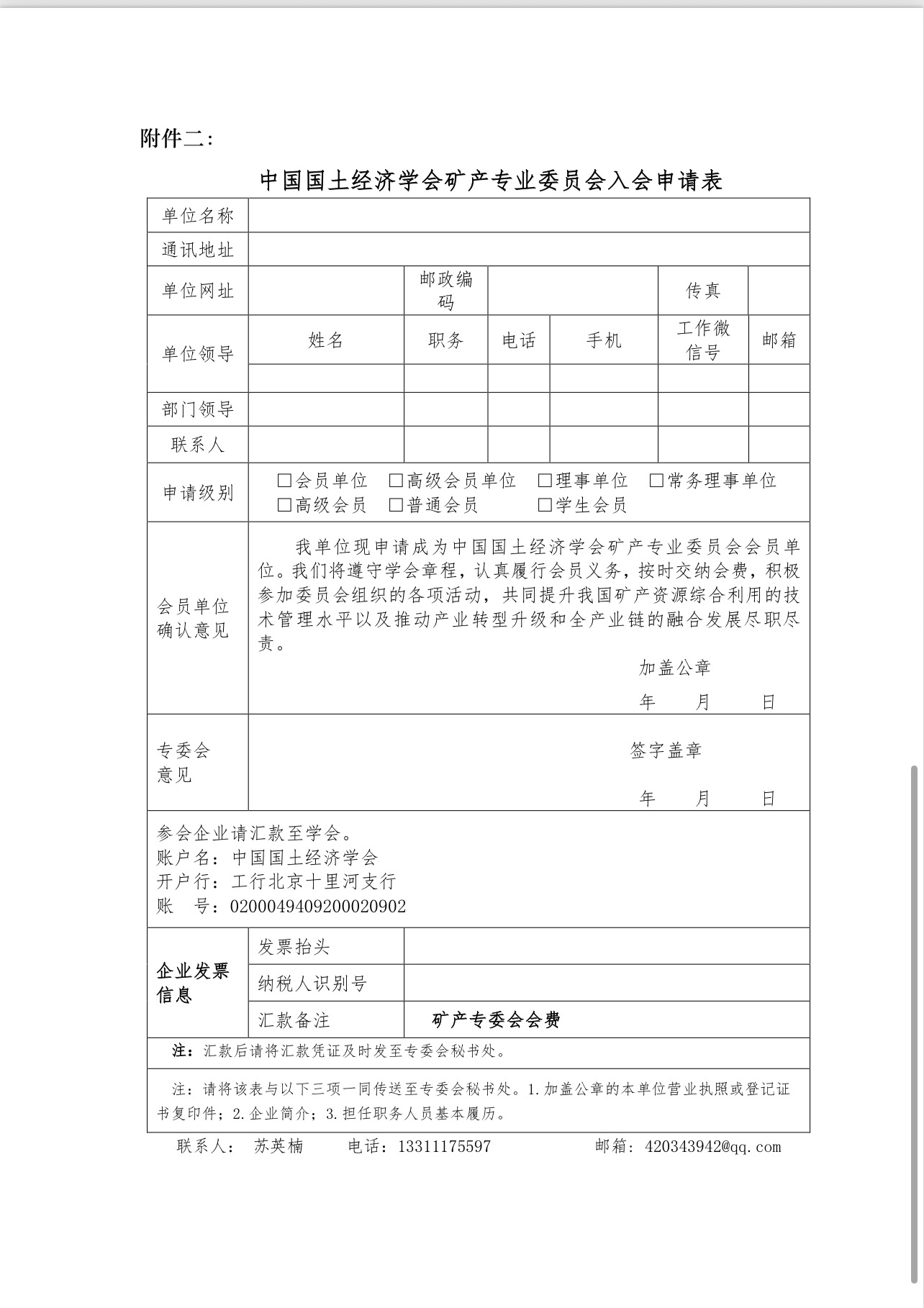 邀请加入矿产专委会入会的函