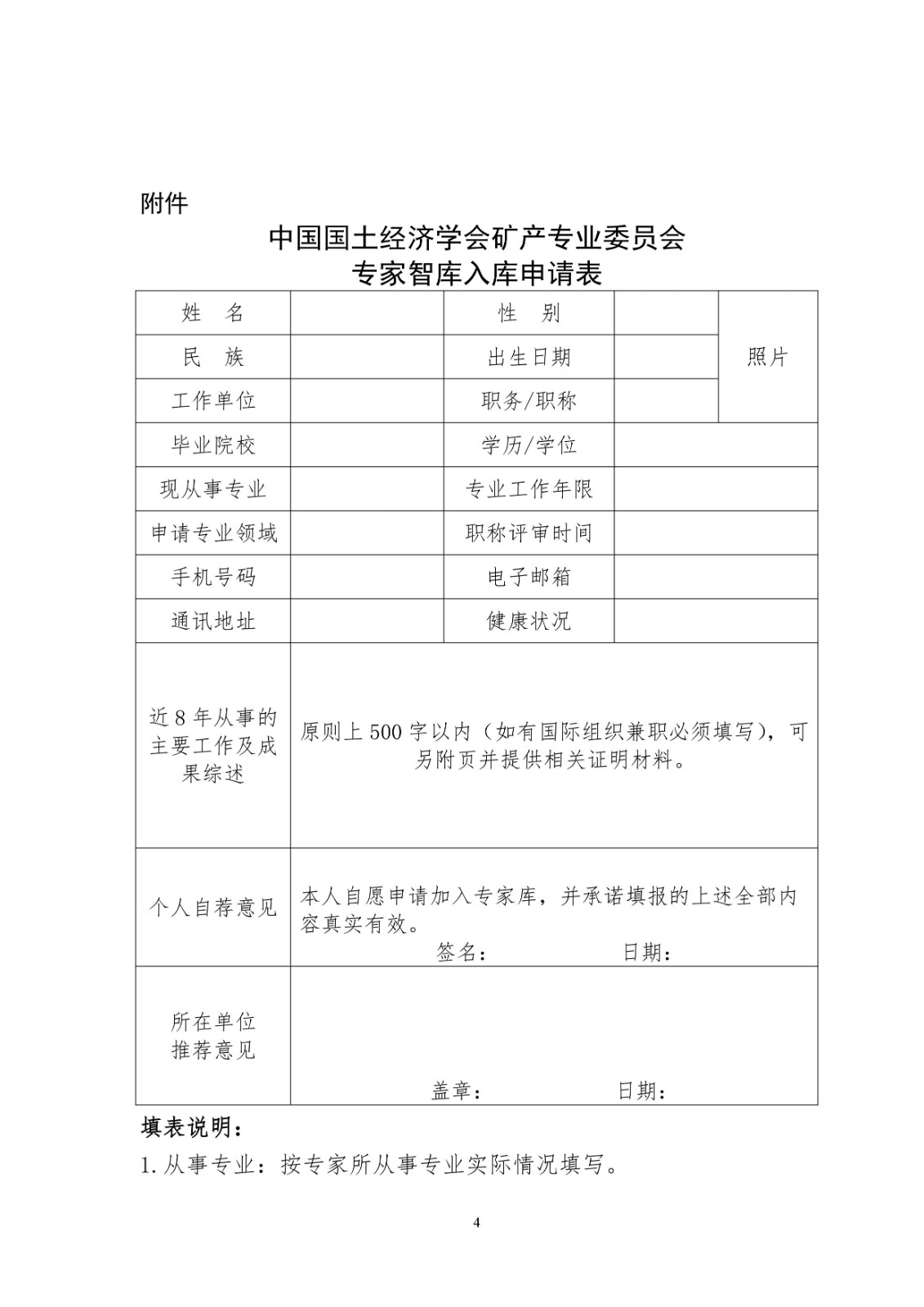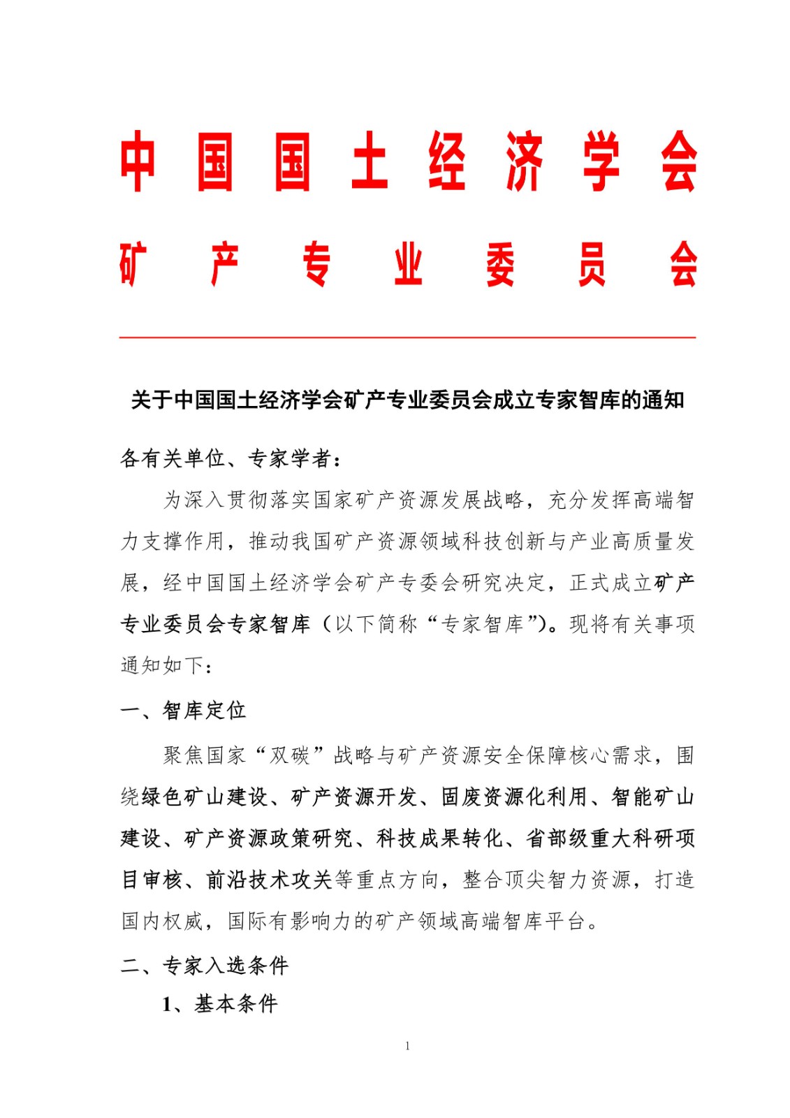 关于中国国土经济学会矿产专业委员会成立专家智库的通知
